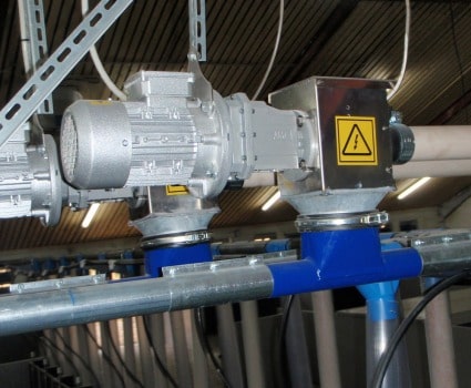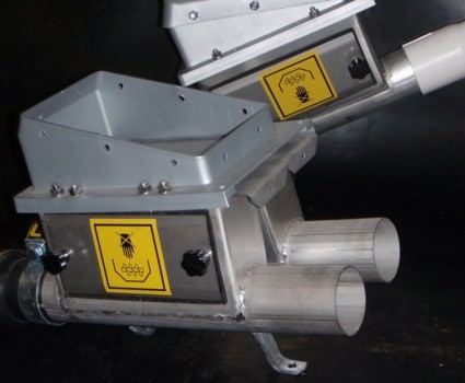 Har målene: 300 x 300 mm med to lodrette sider, der giver størst mulig indløbslængde og passer på alle BM-siloer enten direkte eller med en overgang fra 300 x 300 mm til 500 x 500 mm. Ind- og udløb er boltet sammen, så det er nemt at udskifte slitagedelene.